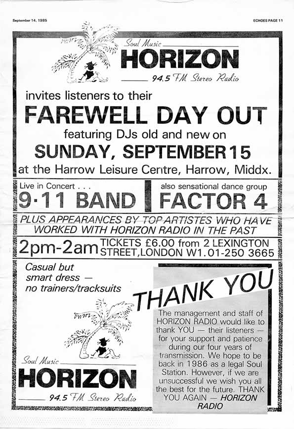 Horizon Radio Close Down Show 15-09-85Sunday 15-09-1985