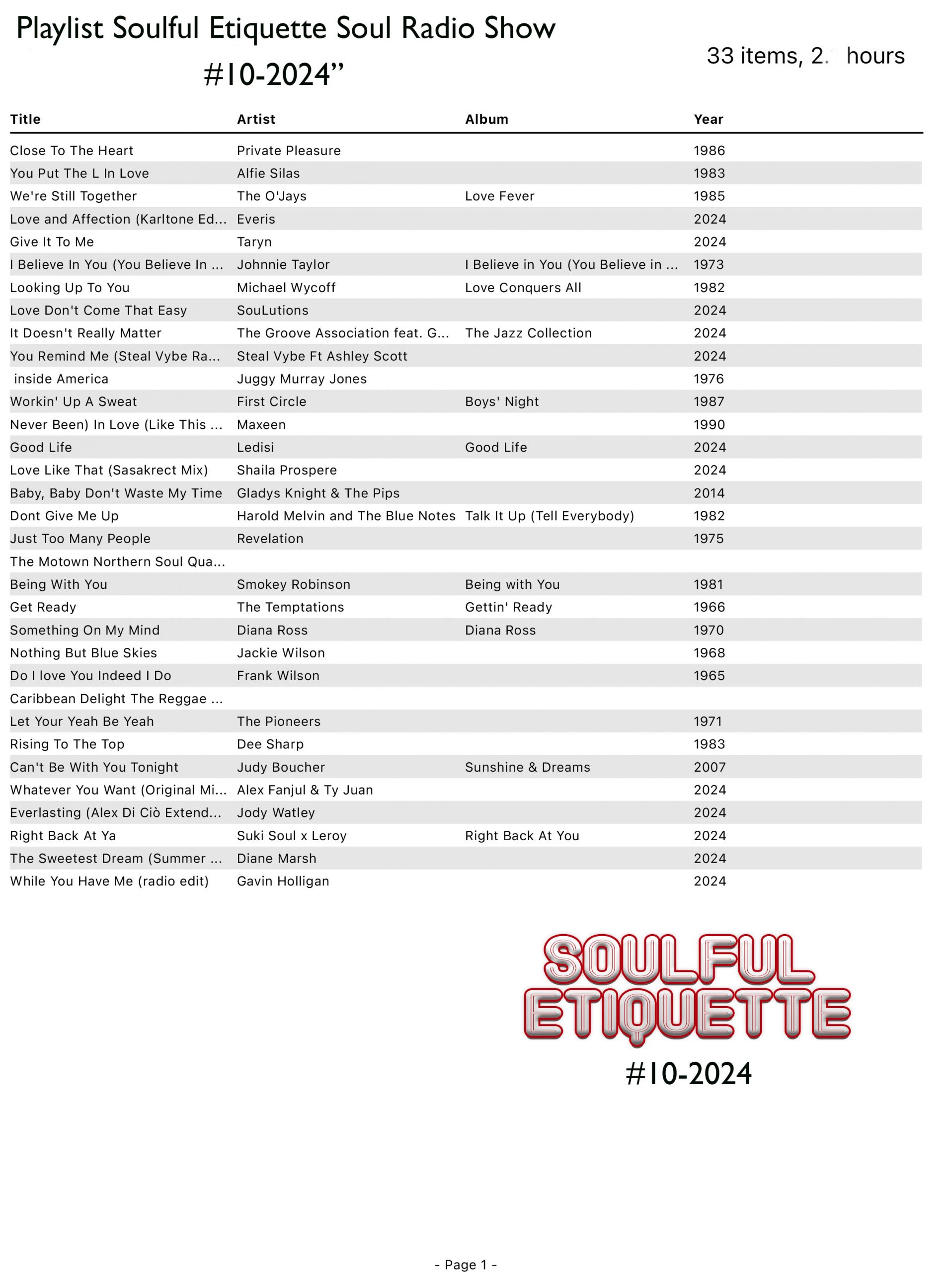 Soulful Etiquette Soul Radio Show “Syndicated #9-2024”