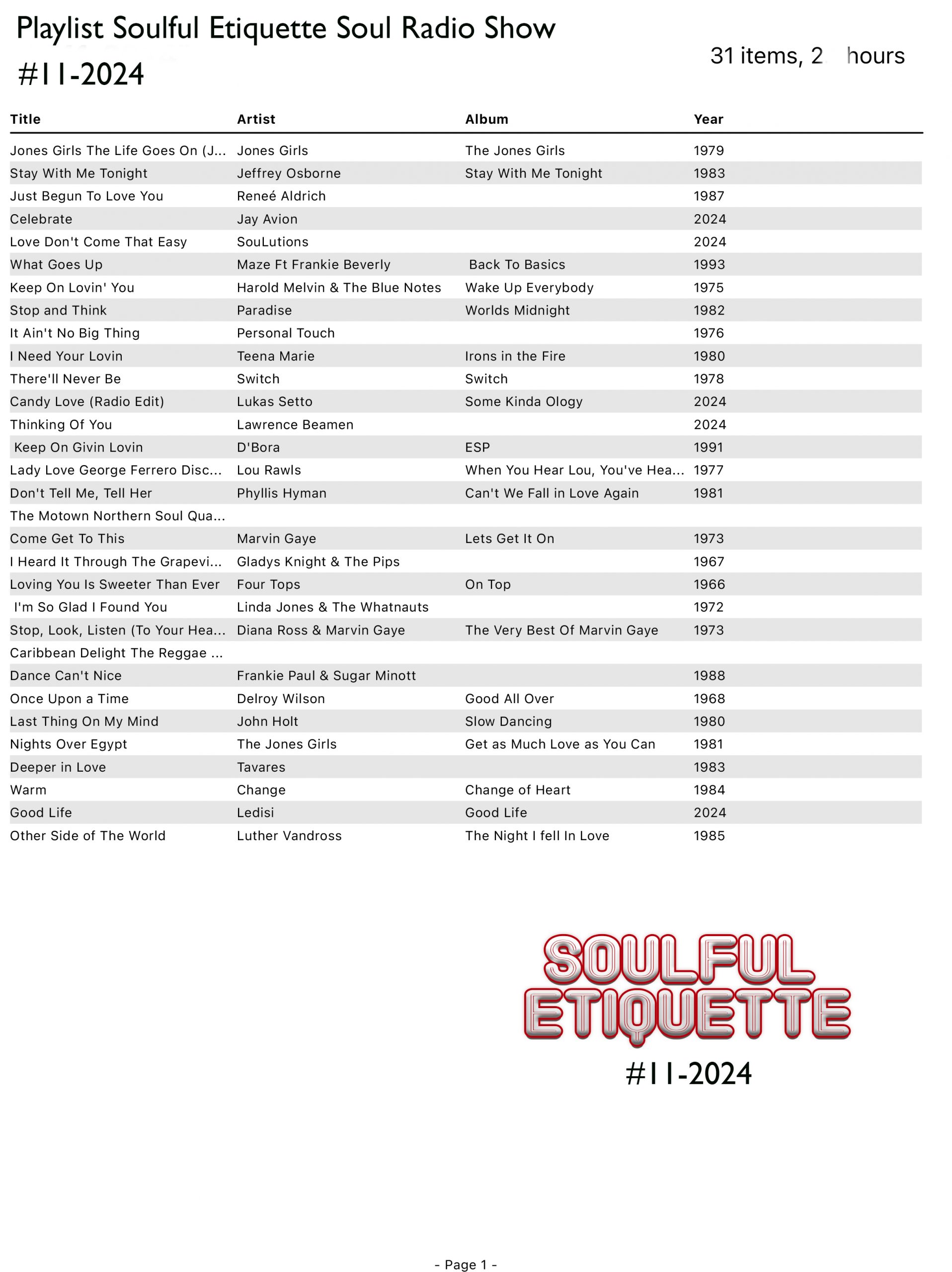 Soulful Etiquette Soul Radio Show #1-2024