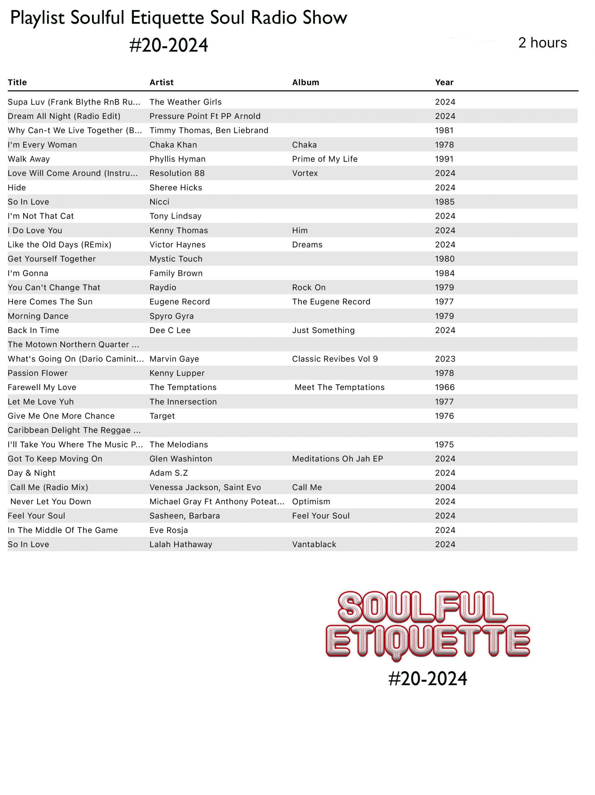 Soulful Etiquette Soul Radio Show “Syndicated #8-2024”