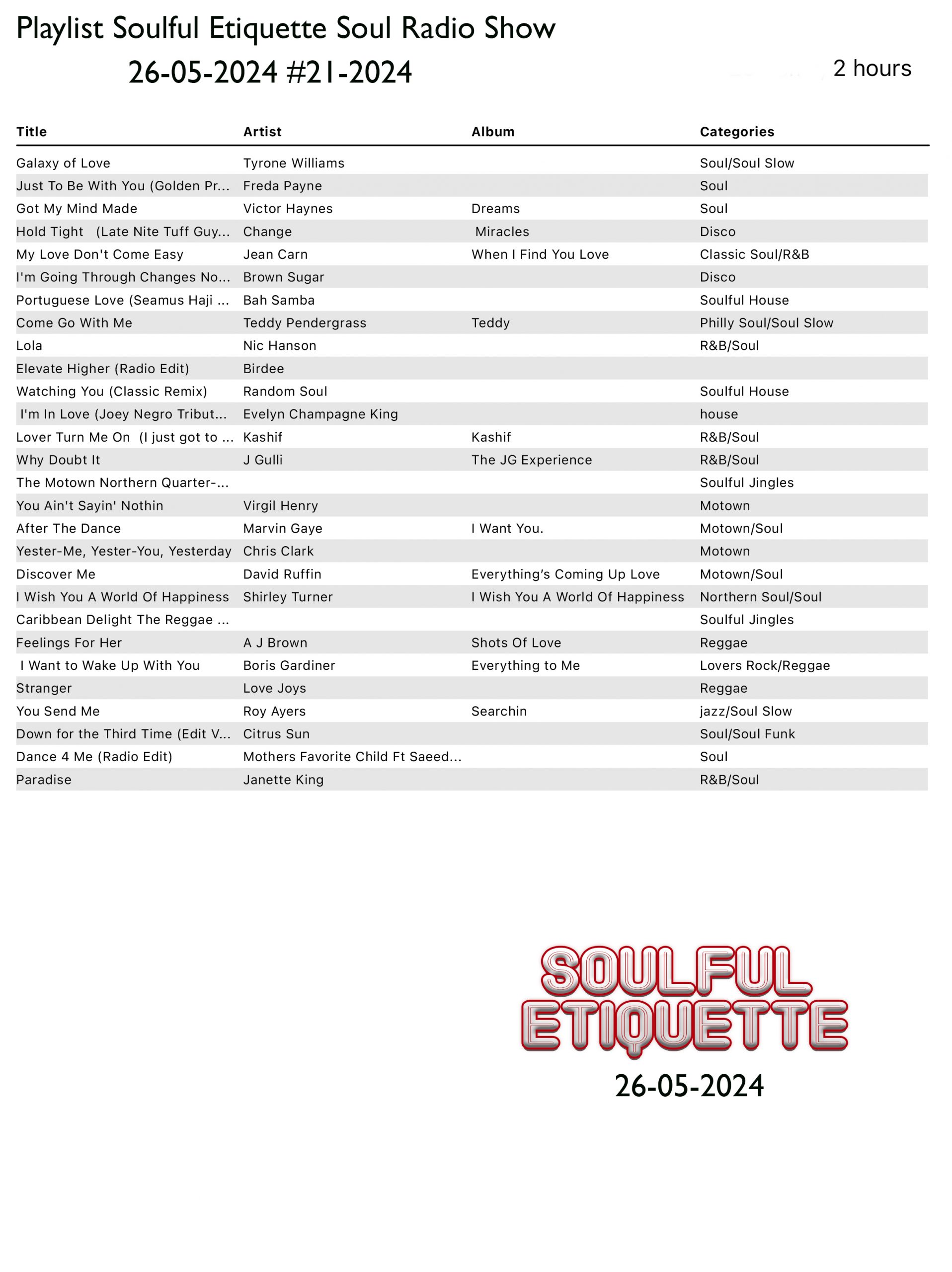 Soulful Etiquetted Soul Radio Show ``Syndicated #5-2024``