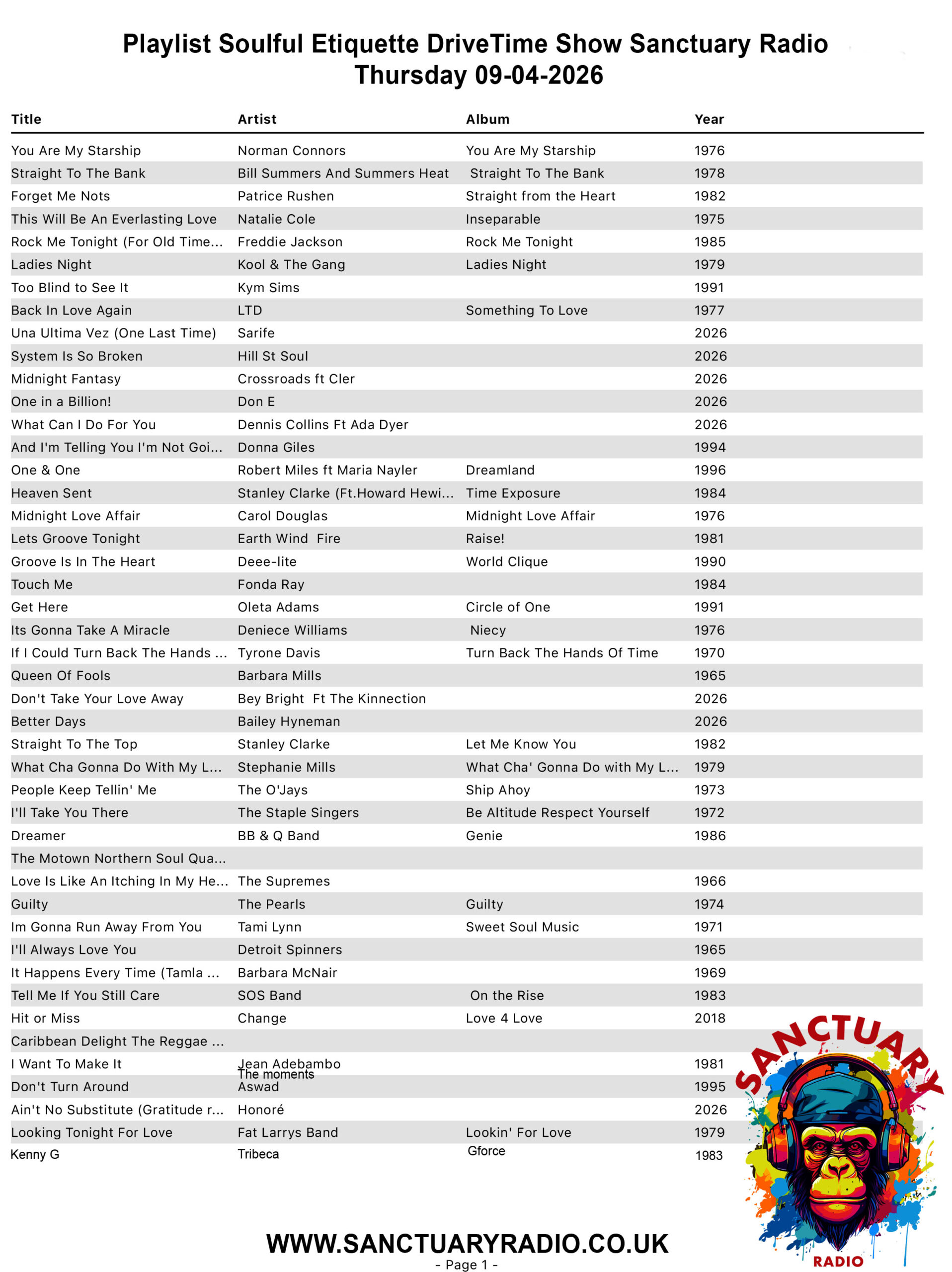 Sanctuary Radio Soulful Etiquette Drivetime Show Thursday 09-04-2026