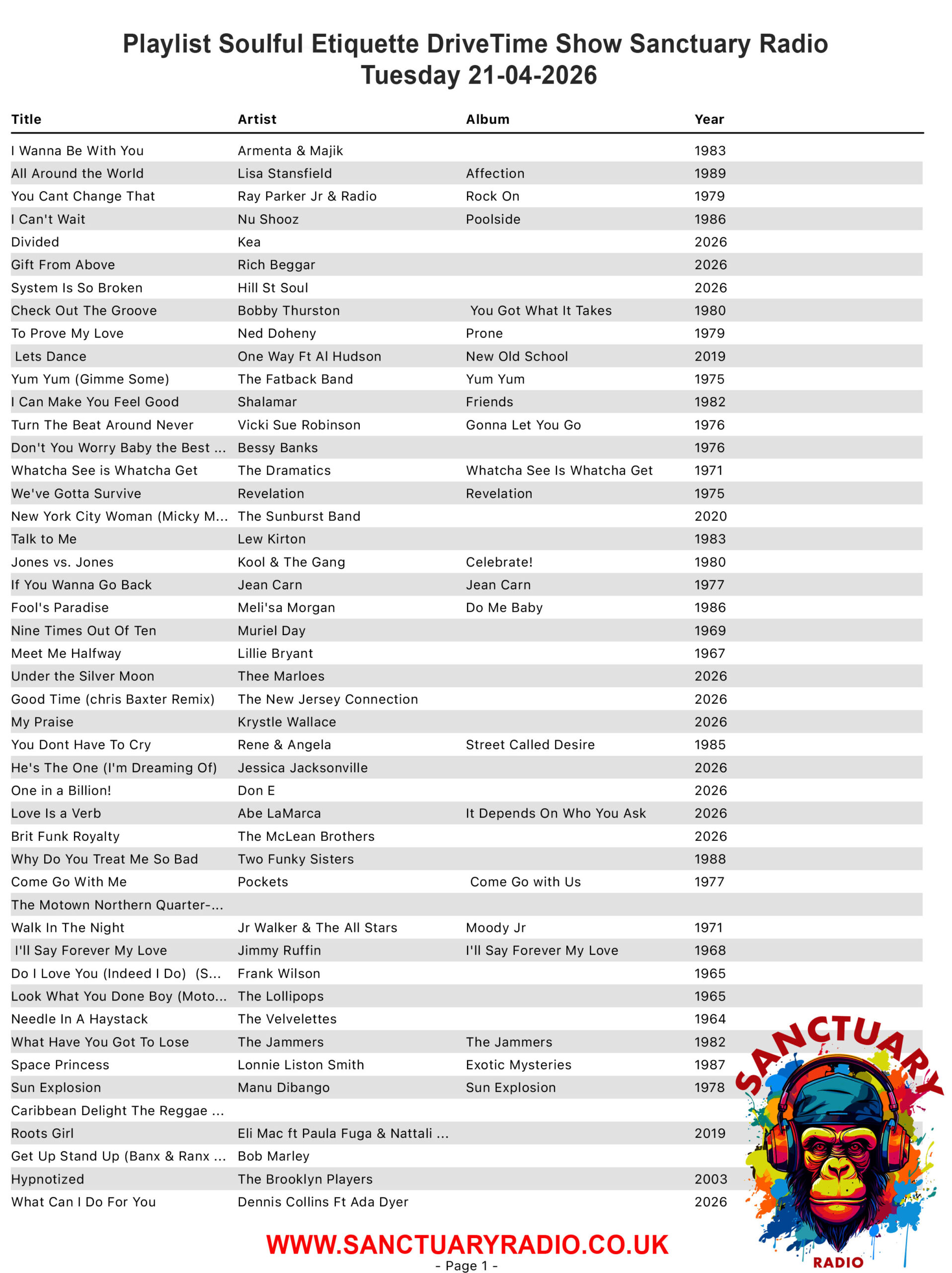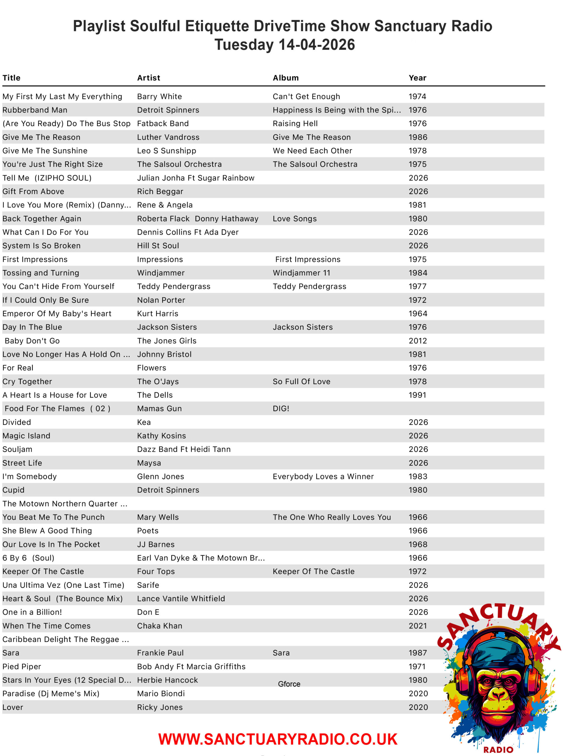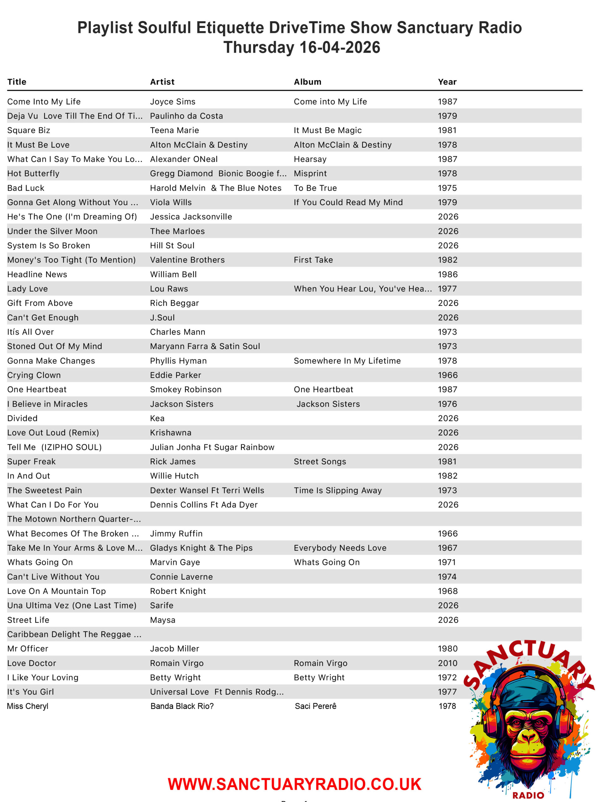 Sanctuary Radio Soulful Etiquette Drivetime Show Thursday 16-04-2026